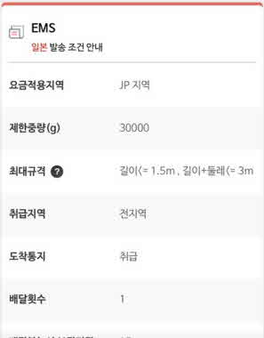 배송 기간, 최대 허용 무게 등